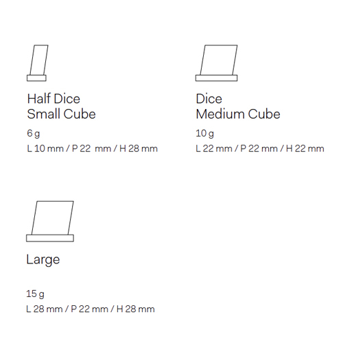 Würfelart: Half Dice / Kleiner Eiswürfel (6 g / L 10 mm / P 22 mm / H 28 mm)